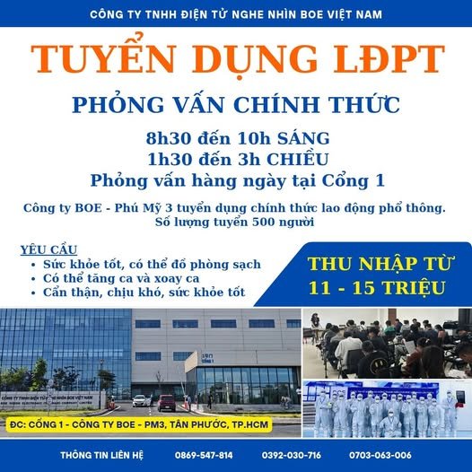 Công ty BOE - KCN Phú Mỹ 3 Tuyển dụng chính thức