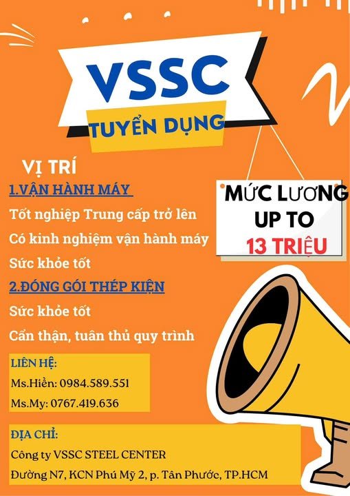 Công ty VSSC STEEL CENTER: Đường N7, KCN Phú Mỹ 2, phường Tân Phước, TPHCM ( Bà Rịa Vũng Tàu cũ)