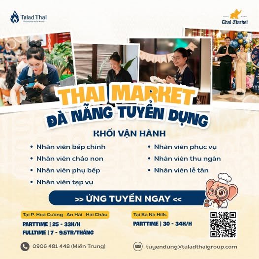 THAI MARKET TUYỂN NHÂN VIÊN CHẢO NON FULL TIME 8 TIẾNG TỪ 8 TRIỆU/THÁNG